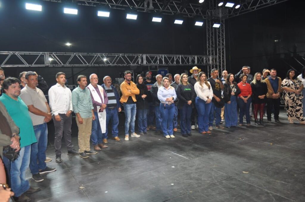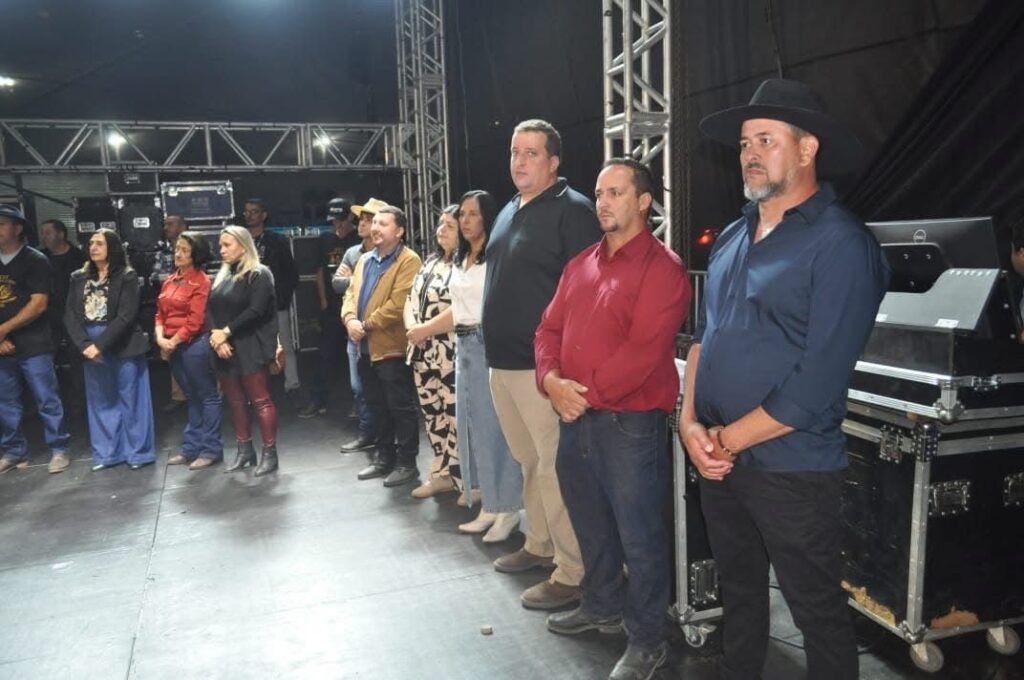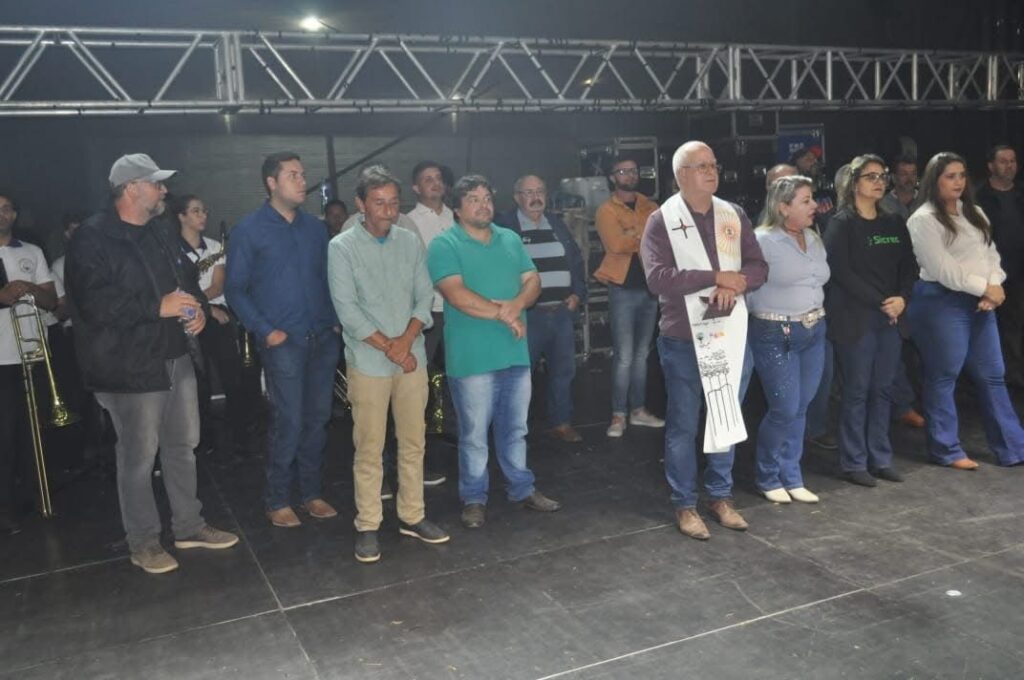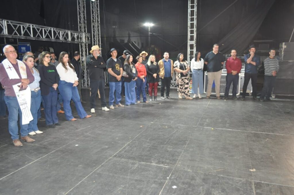 O cerimonial convidou então o prefeito Luiz Fernando Osório, o vice-prefeito Alexandre Landim e outras autoridades para subirem ao palco. A Corporação Musical Cônego Marciano executou o Hino Nacional. Em seguida, o secretário de Cultura e Turismo Juninho Coutinho discursou falando da festa. O orador seguinte foi José Falrene, vice-presidente do Santarritense Esporte Clube, que agradeceu ao prefeito Municipal pela parceria entre Clube e Prefeitura, que possibilitou a iluminação do campo de futebol.